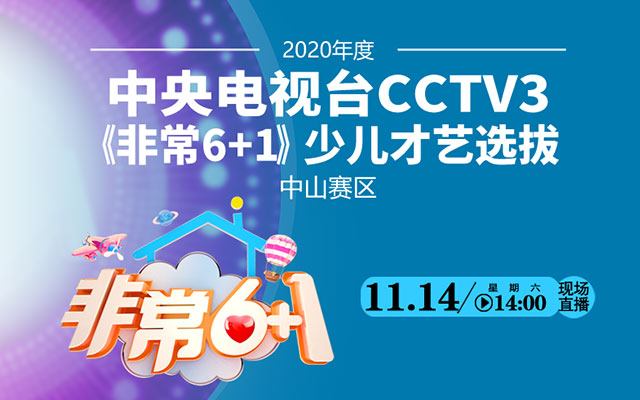2020年度中央電視臺CCTV3《非常6+1》少兒才藝選拔中山賽區(qū)將于11月14日下午2點(diǎn)舉行,中山日報(bào)報(bào)業(yè)集團(tuán).中山網(wǎng)全程直播,敬請關(guān)注!