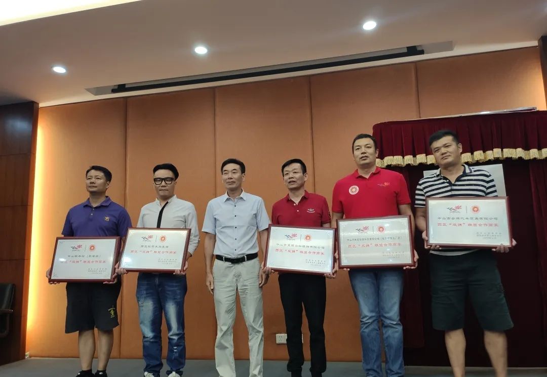 △領(lǐng)導(dǎo)和合作商家代表上臺揭牌,西區(qū)“雙擁”聯(lián)盟正式成立 會上,熊云峰分別為合作商家負(fù)責(zé)人頒授紀(jì)念牌匾。至此,中山市鎮(zhèn)區(qū)首個以退役軍人及其他優(yōu)撫對象為主要服務(wù)對象的組織正式成立。 △熊云峰委員向五家合作企業(yè)商家頒發(fā)紀(jì)念牌匾 據(jù)悉,為聯(lián)動社會力量,共同為轄區(qū)退役軍人獻(xiàn)愛心,西區(qū)發(fā)動轄區(qū)五家企業(yè)聯(lián)合成立“雙擁聯(lián)盟”,分別為轄區(qū)退役軍人定制專屬優(yōu)惠方案,凡符合條件的退役軍人憑證(軍官證、士兵證、退伍證等)消費即可享受相關(guān)優(yōu)惠。