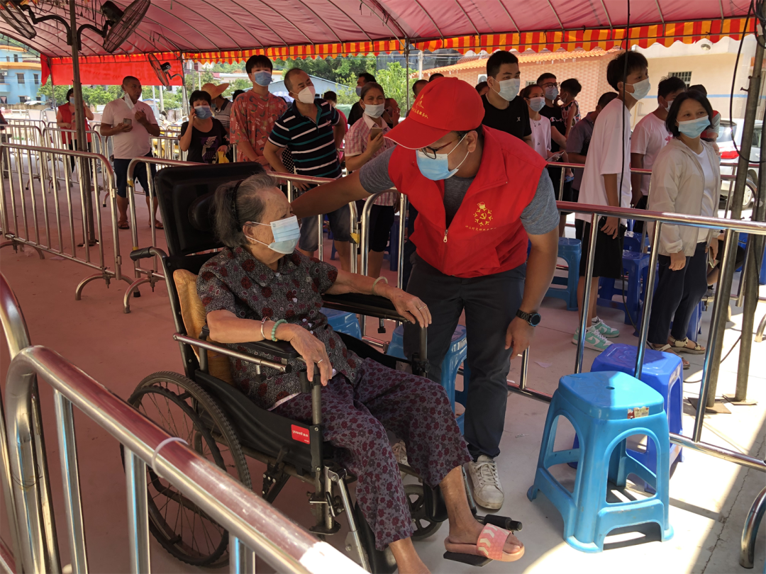 疫情就是命令,防控就是責任。神灣鎮(zhèn)上下聞令而動,黨員干部、醫(yī)護人員、村(社區(qū))工作人、志愿者快速投入戰(zhàn)斗中,共同織密織牢聯(lián)防聯(lián)控“防疫網(wǎng)”。 由于時間緊迫,有的醫(yī)務(wù)人員和各村(社區(qū))工作人員、駐村工作組整個上午連水都沒喝上幾口。為了節(jié)省時間,中午他們在接種點簡單吃個快餐,又開始新的戰(zhàn)斗。 居委會