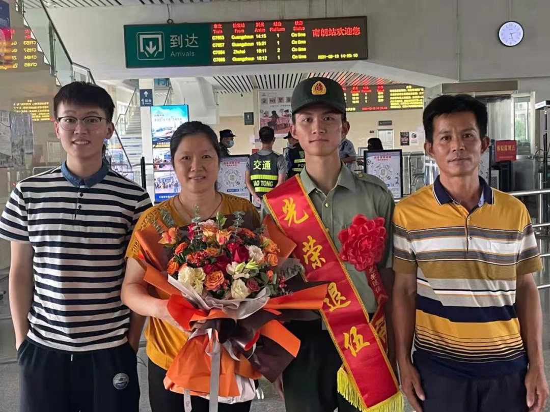 “去時鑼鼓喧天,歸來夾道歡迎?!?/p> 九月,正是退役軍人 從祖國各座軍營 返回家鄉(xiāng)的退役季 為營造“一次參軍、一生光榮”的濃厚氛圍 讓退役軍人感受到家鄉(xiāng)人民的熱情和關(guān)懷 激發(fā)老兵退伍不褪色 返鄉(xiāng)建新功的壯志熱情 9月13日下午,五桂山街道2021年首位退役軍人曾世紀光榮退役返鄉(xiāng)。街道退役軍人服務中心負責人、社區(qū)“兩委”干部、工作人員以及曾世紀的父母早早手持鮮花,在城軌南朗站等候迎接世紀回家。 回想2019入伍歡送大會時曾世紀代表五桂山即將入伍的新兵作表態(tài)發(fā)言,那年,他主動請纓,到艱苦邊遠地區(qū)服役?!皡④姴粌H是個人的榮耀,也是家人的榮耀,更是鄉(xiāng)親們的榮耀。到了部隊后我會堅決服從命令,聽從指揮,刻苦訓練,勤學本領(lǐng),絕不辜負家鄉(xiāng)人民的期望!”