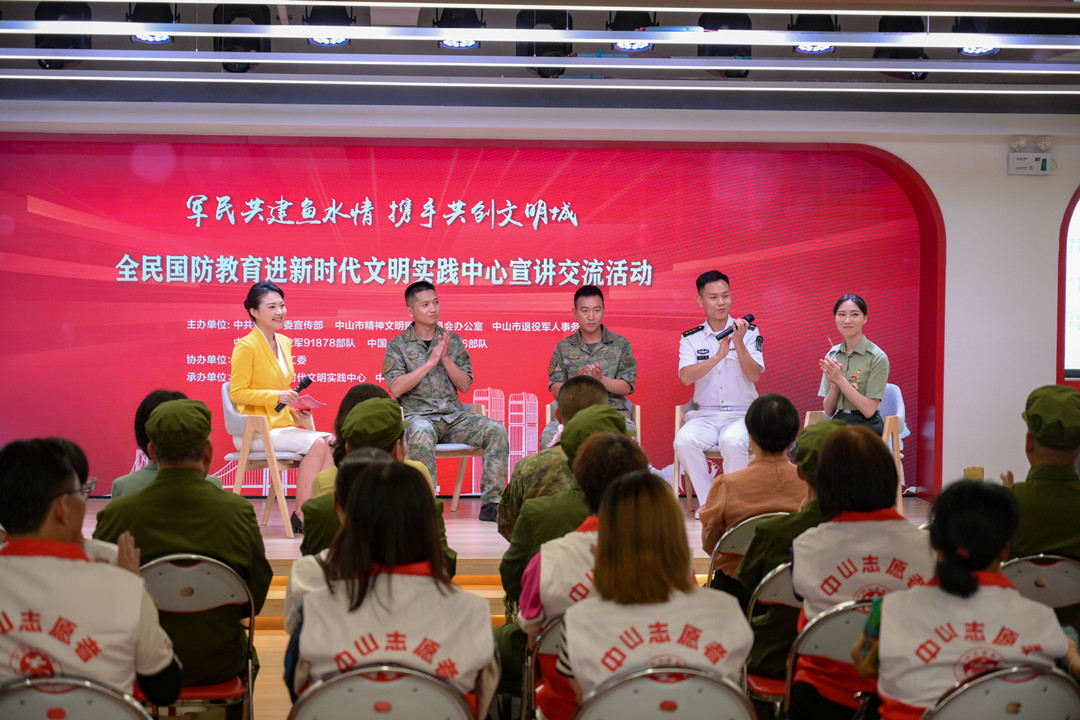 5月18日下午,全民國防教育進(jìn)新時(shí)代文明實(shí)踐中心宣講交流活動在中山市民眾街道新時(shí)代文明實(shí)踐中心舉行,退役軍人代表、基層群眾、村干部以及受邀出席的中國人民解放軍91878部隊(duì)、69316部隊(duì)官兵代表等200余人參加活動。  活動現(xiàn)場。記者 易承樂 攝