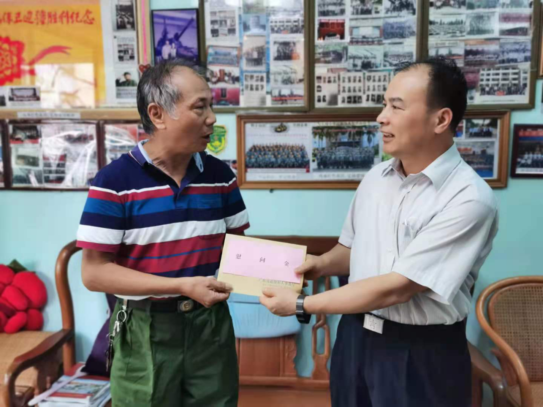 慰問組到石岐街道慰問一等功臣何思源 莊華坤一行首先來到石岐街道一等功臣何思源家中,為他送上節(jié)日祝福和問候。慰問組一行還詳細(xì)了解了何思源的家庭生活和身體狀況,并聆聽他的軍旅生涯經(jīng)歷。當(dāng)?shù)弥嗡荚词且幻凹t色宣講團(tuán)”成員,經(jīng)常利用業(yè)余時(shí)間為學(xué)校、部隊(duì)、企業(yè)、社區(qū)等開展愛國主義思想教育、革命傳統(tǒng)教育等公益活動(dòng)時(shí),莊華坤予以充分肯定,并鼓勵(lì)何思源繼續(xù)傳遞社會(huì)正能量,大力弘揚(yáng)優(yōu)秀軍人的光榮傳統(tǒng)。