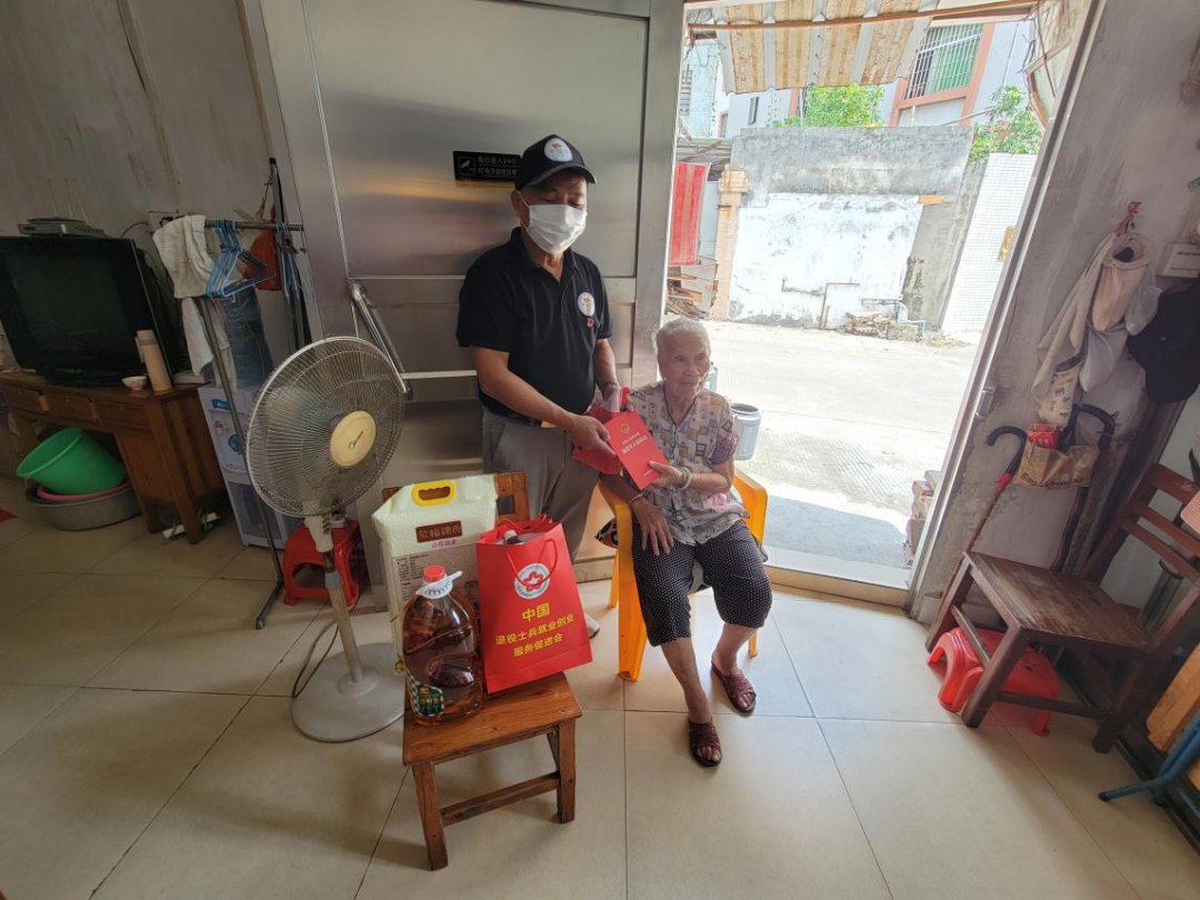 為弘揚(yáng)愛國主義精神,發(fā)揚(yáng)退役軍人志愿者擁軍優(yōu)屬的光榮傳統(tǒng),表達(dá)對退役軍人的崇敬和關(guān)愛,古鎮(zhèn)鎮(zhèn)退役軍人服務(wù)中心與鎮(zhèn)退役軍人紅旗志愿服務(wù)隊(duì)在“八一”建軍節(jié)來臨之際開展節(jié)日慰問活動(dòng),對15戶困難退役軍人家庭和7戶烈屬進(jìn)行走訪慰問。 7月27日-29日,鎮(zhèn)退役軍人紅旗志愿服務(wù)隊(duì)隊(duì)員利用休息時(shí)間深入各村(居),帶著米、油、飲料等生活用品走進(jìn)困難退役軍人家庭和烈屬家中。 每到一處,退役軍人紅旗志愿者們與退役軍人及其家屬親切交談,詢問他們的身體狀況和生活情況,并詳細(xì)了解他們目前的實(shí)際困難和需求,感謝他們?yōu)閲液蜕鐣龀龅呢暙I(xiàn),囑咐他們要以積極的心態(tài)面對困難,高溫天氣下注意飲食和防暑,同時(shí)宣傳普及《退役軍人保障法》。