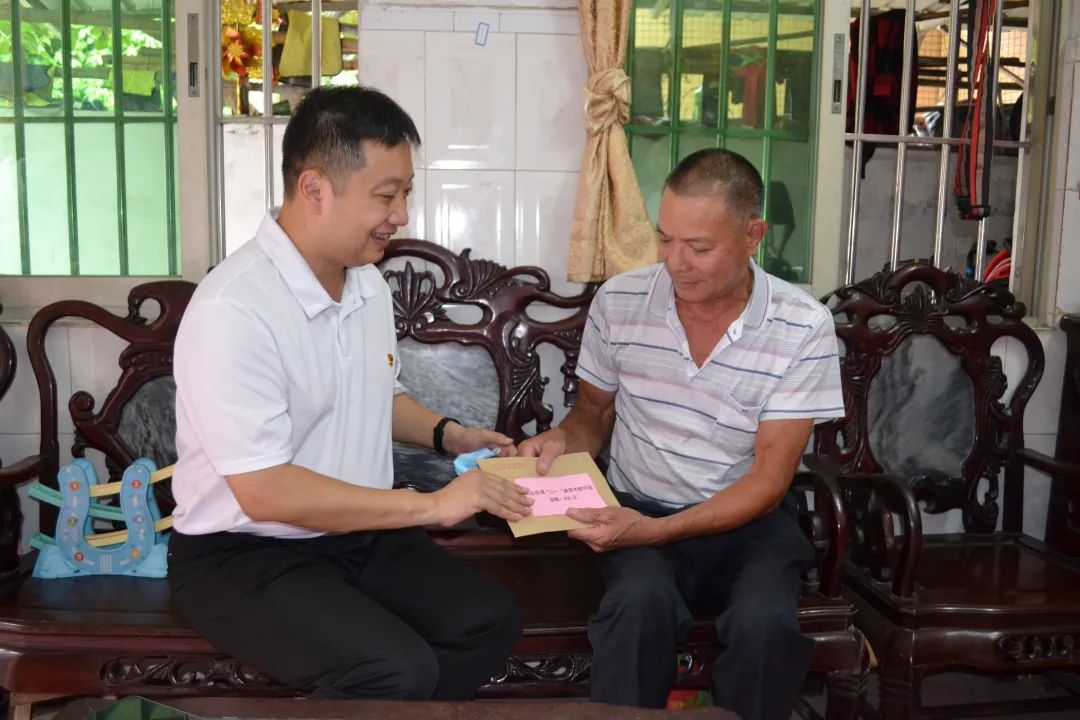 “生活上有什么困難?”“家里近況可好?”當(dāng)天下午,黃聲群一行來(lái)到陳炎根家中,為他送上慰問(wèn)金,認(rèn)真傾聽(tīng)其實(shí)際困難和生活需求,感謝根叔為黨和人民所作出的貢獻(xiàn)。