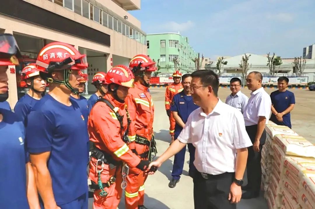 在小欖消防救援大隊(duì),薛治國與消防指戰(zhàn)員們一一握手,向他們送上節(jié)日的問候和慰問品,并對他們的忠誠奉獻(xiàn)表示崇高的敬意和衷心的感謝。 薛治國指出,消防指戰(zhàn)員為保護(hù)人民群眾生命財(cái)產(chǎn)安全、維護(hù)社會和諧穩(wěn)定發(fā)揮了積極作用,贏得了全鎮(zhèn)人民的一致好評。他希望消防指戰(zhàn)員要進(jìn)一步深入學(xué)習(xí)貫徹習(xí)近平總書記授旗訓(xùn)詞精神,牢記使命、恪盡職守,發(fā)揮忠誠履職、無私奉獻(xiàn)的優(yōu)良傳統(tǒng),切實(shí)抓好隊(duì)伍建設(shè)和日常訓(xùn)練,以更加飽滿的熱情、更加昂揚(yáng)的斗志投入到各項(xiàng)工作中。