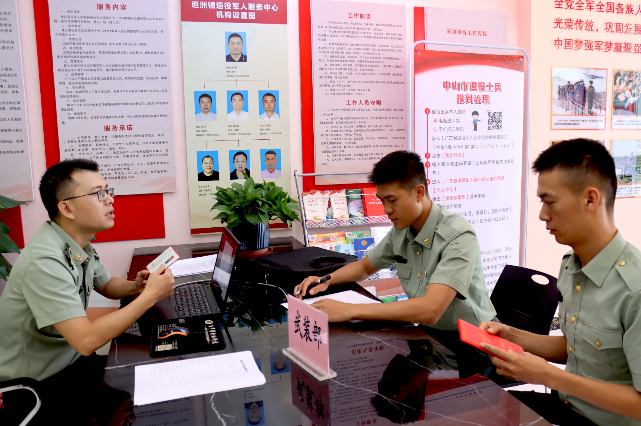 進(jìn)入9月份,坦洲鎮(zhèn)陸續(xù)迎來(lái)返鄉(xiāng)報(bào)到的2021年秋季退役士兵。為進(jìn)一步提升服務(wù)水平,切實(shí)讓返鄉(xiāng)退役士兵感受到家鄉(xiāng)的溫暖和社會(huì)的尊崇,坦洲鎮(zhèn)公共服務(wù)辦公室、退役軍人服務(wù)中心聯(lián)合鎮(zhèn)人民武裝部、公安分局、人社分局等部門,提前謀劃、精心組織,想退役士兵之所想,急退役士兵之所急,竭誠(chéng)為戰(zhàn)友們提供溫馨便捷的“一站式”服務(wù)。