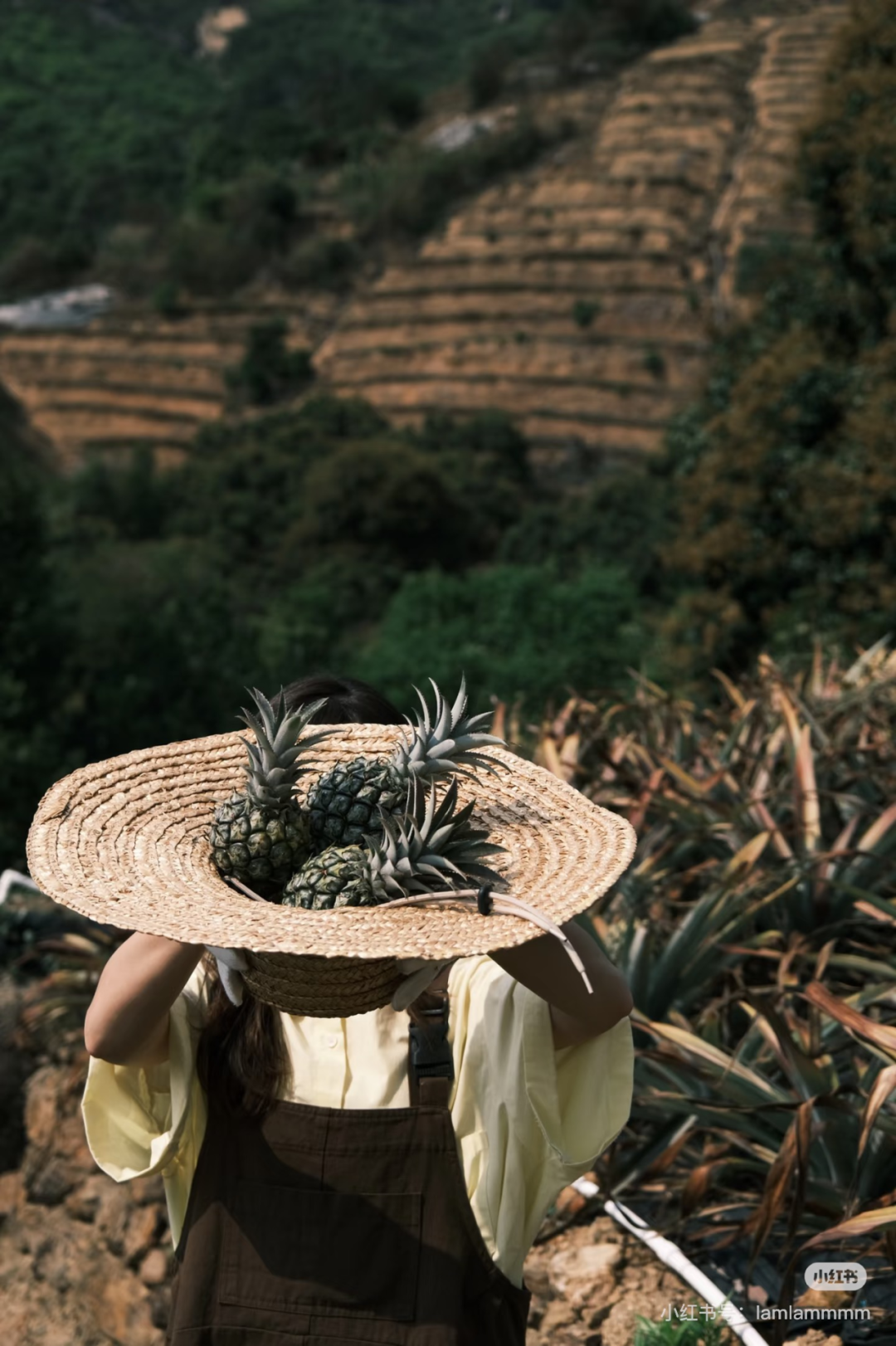 ▲游客在神溪村一處山地菠蘿處打卡拍照 圖片來源:游客小紅書
