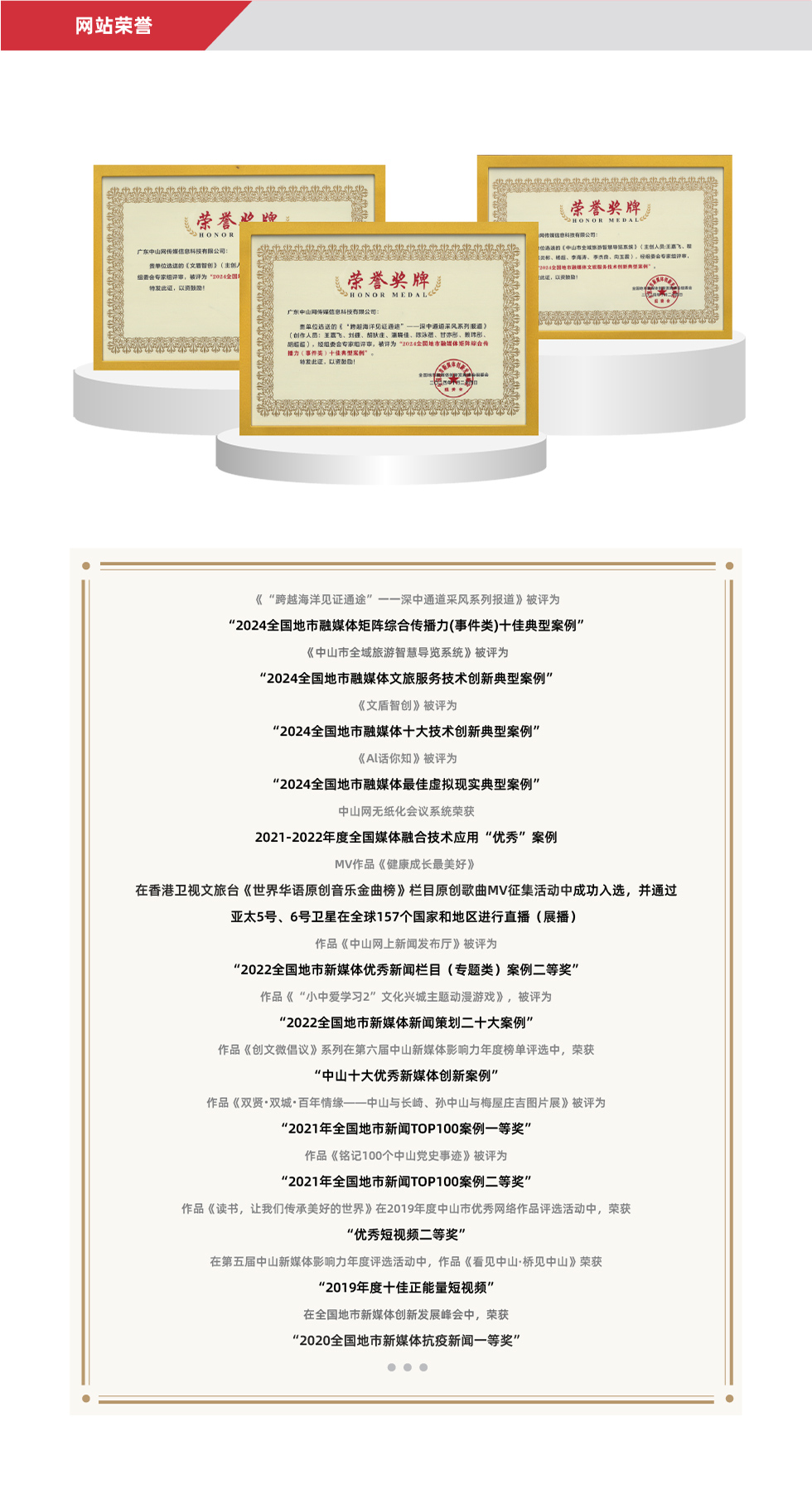 為積極響應(yīng)國家文化體制改革,2012年中山網(wǎng)信科應(yīng)運而生,是中山日報社全資一級企業(yè)。經(jīng)過十多年的發(fā)展,中山網(wǎng)信科已成長為國家高新技術(shù)企業(yè)、廣東省專精特新中小企業(yè),擁有互聯(lián)網(wǎng)新聞信息服務(wù)許可證、信息網(wǎng)絡(luò)傳播視聽節(jié)目許可證、增值電信業(yè)務(wù)經(jīng)營許可證等國家、省、市級行業(yè)許可,是本地證照最為齊全的新聞機構(gòu)之一。