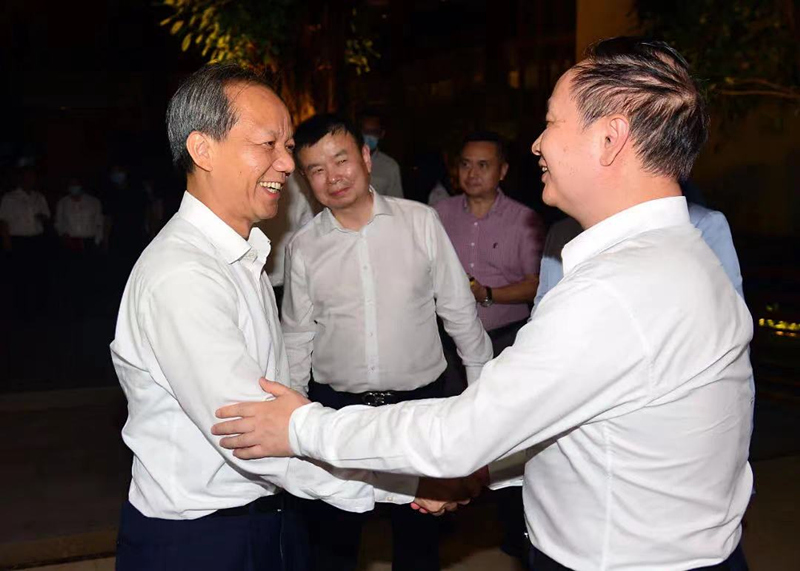 5月26日晚,市委常委會(擴大)會議結束后,市委書記郭文海馬不停蹄,前往會見來中山考察的廣東省粵港澳大灣區(qū)產業(yè)協(xié)同發(fā)展聯(lián)合會、深商總會領導和企業(yè)家一行,推介中山營商環(huán)境與投資機遇,就加強雙方合作進行座談交流。