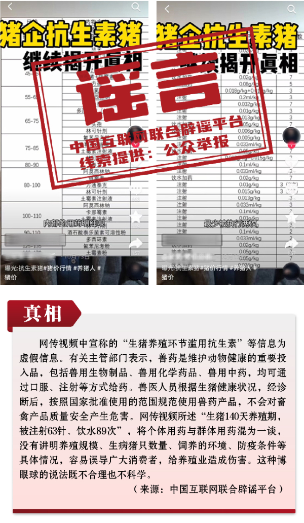 謠言10:生豬140天飼養(yǎng)周期內(nèi)用34種抗生素?