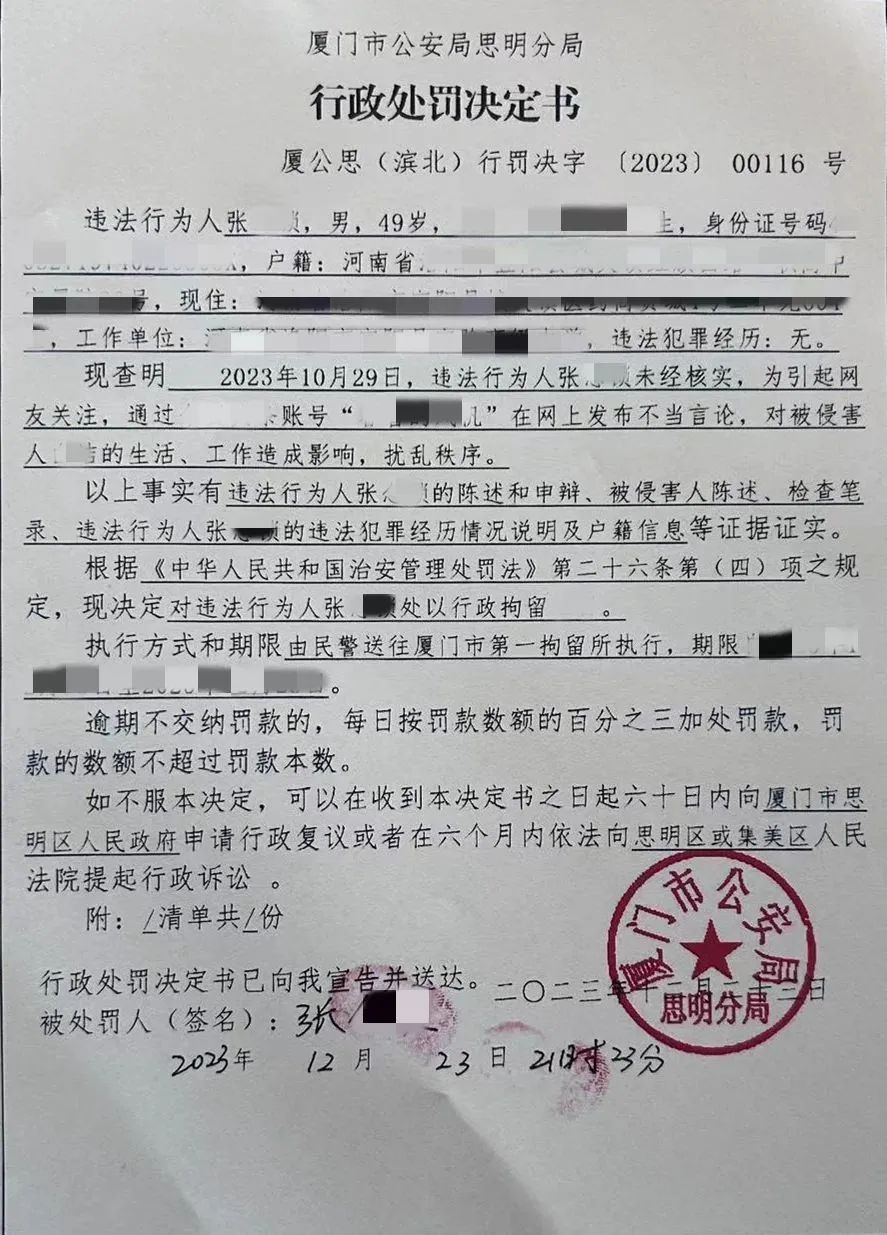 造謠者張某被廈門警方查獲