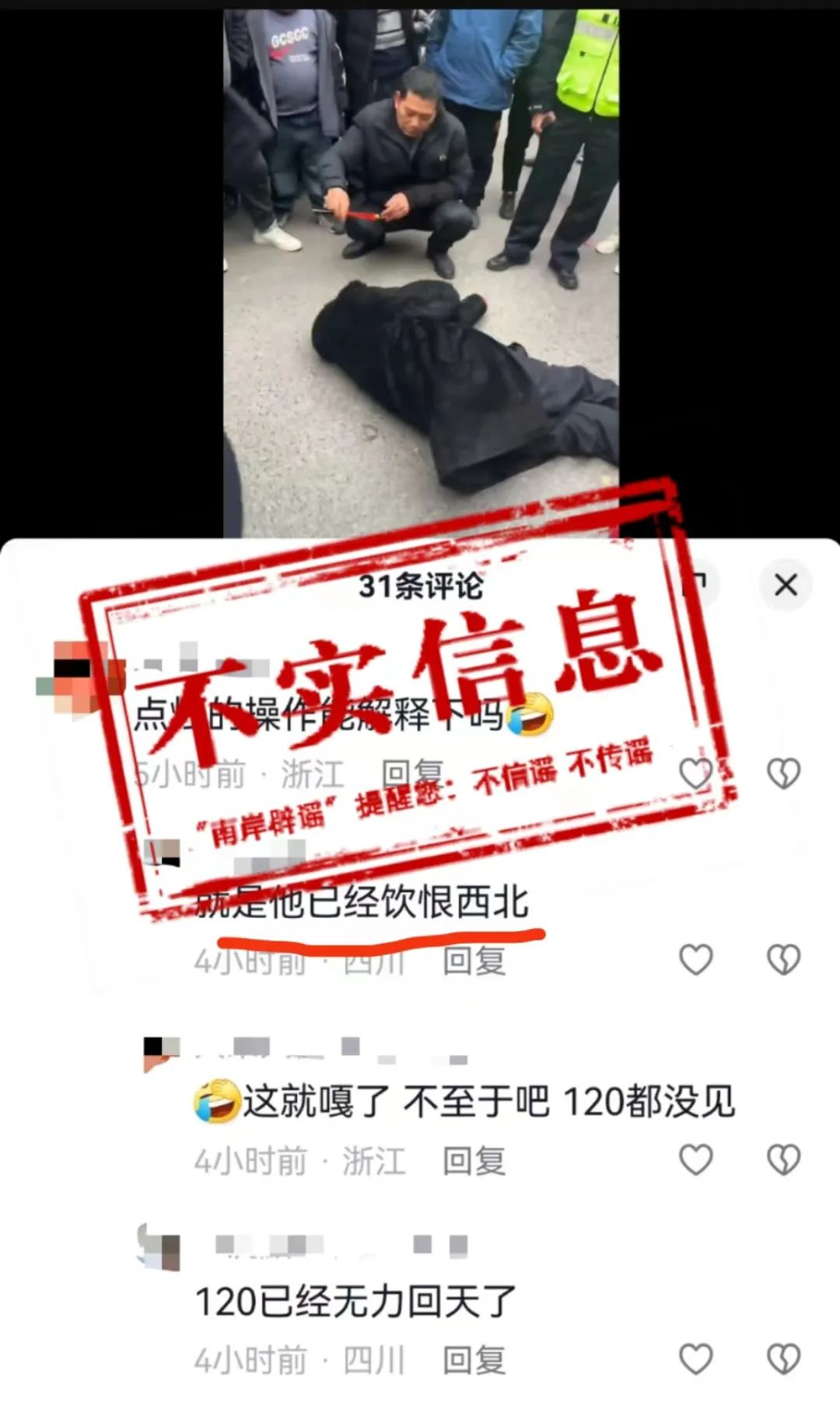 經(jīng)核實,該信息為不實信息。1月29日下午15:30左右,一男子因醉酒在廣陽鎮(zhèn)明月沱街道上倒地昏睡,約20分鐘酒醒后自行離開,并非網(wǎng)友猜測的醉酒死亡。