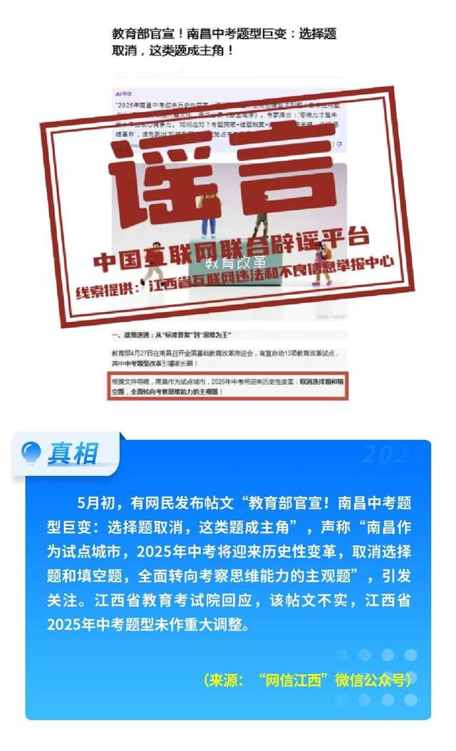 江西南昌2025年中考取消選擇題和填空題?