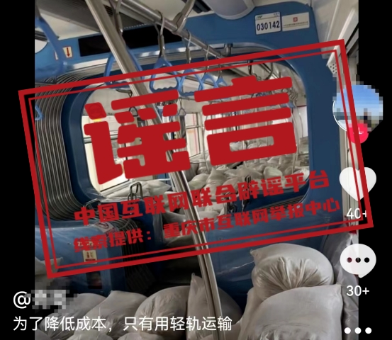 謠 言 為降低成本,重慶用輕軌運(yùn)沙?