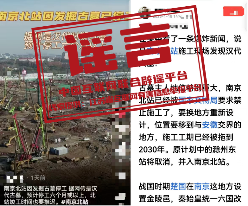 謠 言 南京北站挖到古墓被停工了?