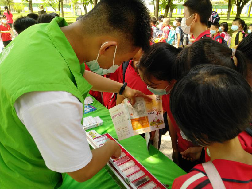 活動(dòng)現(xiàn)場(chǎng),擺設(shè)有仿真毒品模型、VR眼鏡的攤位吸引了眾多學(xué)生。社工熱情地向?qū)W生講解了毒品的危害和防范新型毒品的有關(guān)知識(shí),呼吁同學(xué)們要遠(yuǎn)離毒品,珍愛生命。