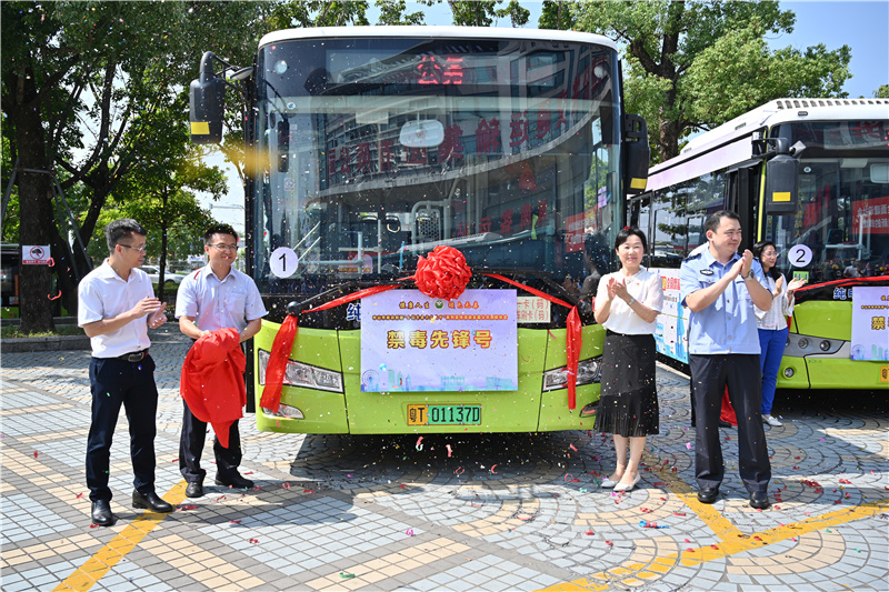 發(fā)車儀式上,中山市禁毒辦相關負責人介紹說,“全民禁毒、人人參與”是中山禁毒工作的特色,公交車具有流動性強、覆蓋面廣、宣傳精準等優(yōu)勢,利用好公交車廂這一流動的宣傳載體,讓中山公交車輛“化身”禁毒衛(wèi)士,帶領市民在乘車過程中識毒、防毒、拒毒,意義非凡。