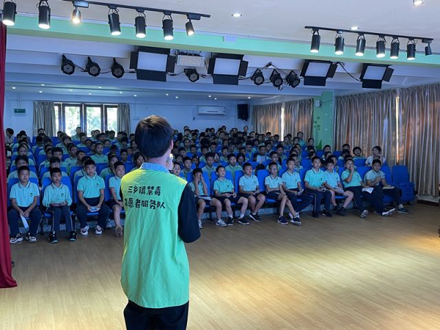 為進(jìn)一步加強(qiáng)學(xué)校禁毒宣傳教育工作,預(yù)防和減少青少年涉毒違法犯罪,讓學(xué)生從思想上樹立禁毒、識(shí)毒、拒毒、防毒、遠(yuǎn)離毒品的意識(shí)。9月7日,三鄉(xiāng)鎮(zhèn)禁毒辦、三鄉(xiāng)鎮(zhèn)禁毒社工服務(wù)中心聯(lián)合鎮(zhèn)文體教育局開展“遠(yuǎn)離毒品,呵護(hù)未來”為主題的“禁毒第一課”,與學(xué)校共筑防毒墻,共建平安校園。