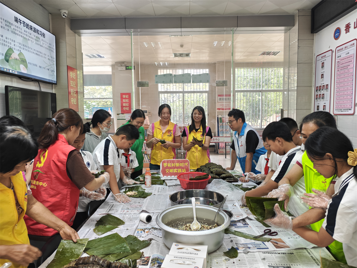 活動伊始,禁毒社工向?qū)W生們展示仿真毒品模型和禁毒宣傳單張,用簡單易懂的語言向?qū)W生們介紹毒品的種類、危害以及防范方法。隨后,工作人員講授了端午節(jié)的來源及習(xí)俗,并教授學(xué)生們?nèi)绾伟兆?,學(xué)生們紛紛拿起粽葉跟著工作人員忙活起來,不一會兒,一只只飽滿的粽子便呈現(xiàn)了。