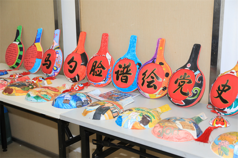 中國共產(chǎn)黨成立100周年標識、井岡山勝利會師、南昌起義、嘉興游船上舉行的中共一大、萬里長征路……分享會現(xiàn)場,刻畫了一個個黨史故事的木瓢排列成行,十分引人注目?!斑@是國家級非物質(zhì)文化遺產(chǎn)——馬勺臉譜。它是陜西的傳統(tǒng)民間藝術(shù),以馬勺作‘紙’,將社火臉譜以彩繪的形式繪制在上面?!瘪R勺臉譜傳承者、沙溪中學(xué)老師馬世杰介紹。作為一名美術(shù)老師,馬世杰通過民間藝術(shù)的再創(chuàng)新來引導(dǎo)學(xué)生學(xué)習(xí)黨史,在他的帶領(lǐng)下,沙溪中學(xué)的學(xué)生將南粵特色、中山元素、國風(fēng)動漫等融入馬勺臉譜的創(chuàng)作中。“繪制黨史故事前,我們查閱了大量資料,并向?qū)<覍W(xué)者請教,在創(chuàng)作中引導(dǎo)學(xué)生們了解、學(xué)習(xí)黨史?!?/p>